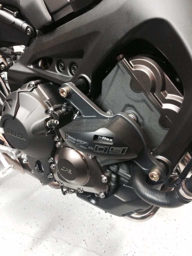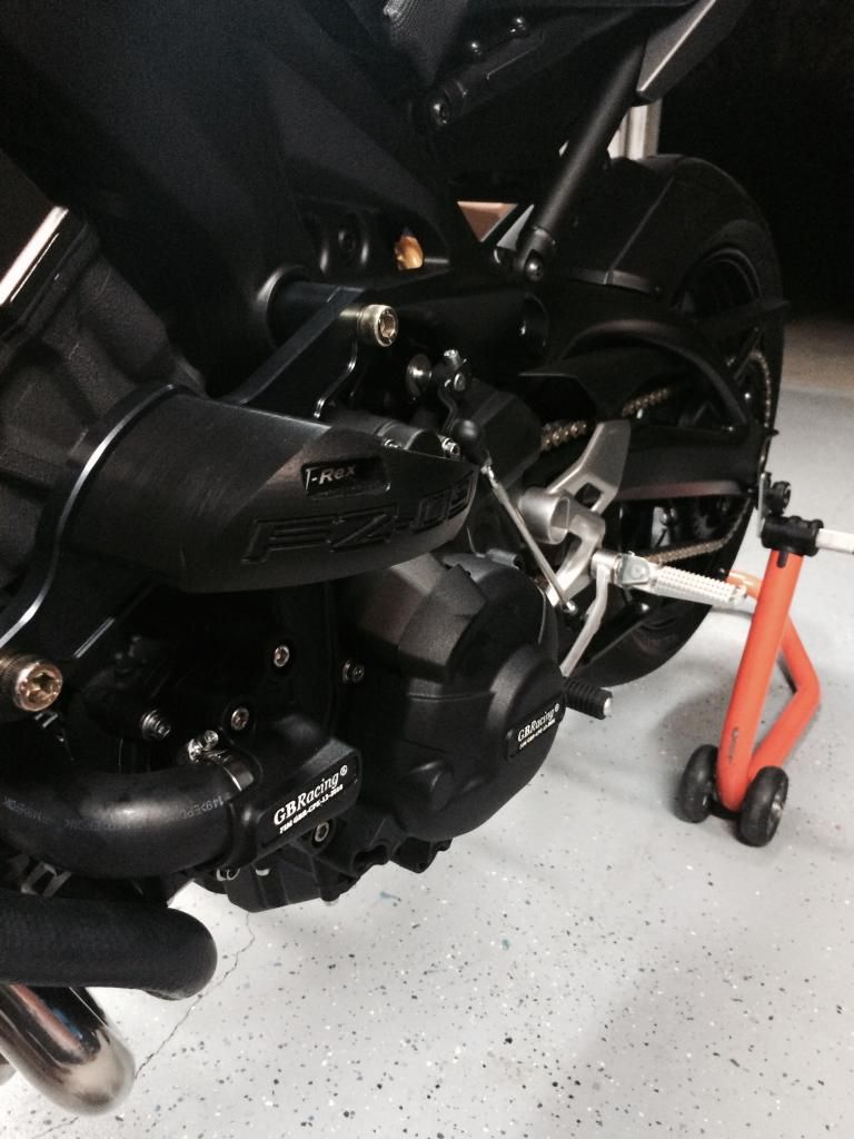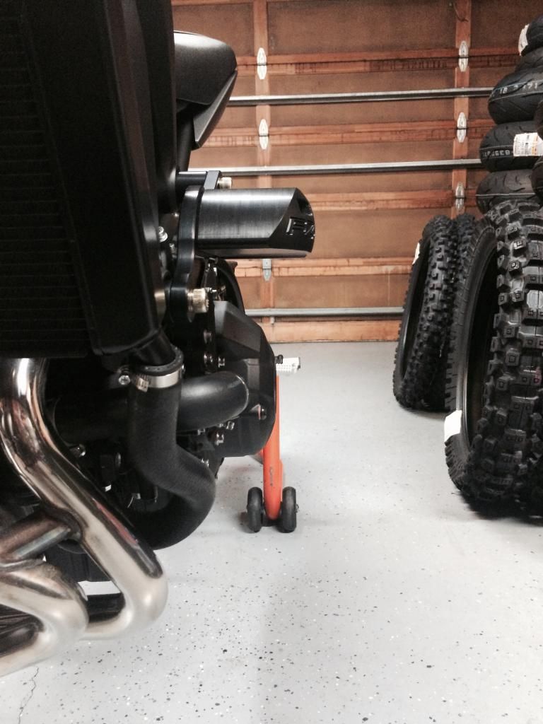 Some think that all freestyle bikes need a crash cage but those giant bird cages add a lot of weight and often hinder the available lead angle. This is going to be my tip over solution for this season. T-Rex Frame sliders combined with the GBRacing Engine case cover protectors.