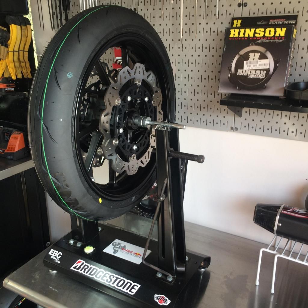 Mounted up the new style EBC Rotors (Oversized 310) and Bridgestone R10 tires balanced them in and ready to roll.