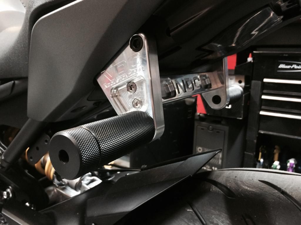 For freestyle use the OEM passenger pegs would be too flimsy and far forward for me to use. We found some great mount holes to located off of further up in the subframe and started to base the desired footing position from there.